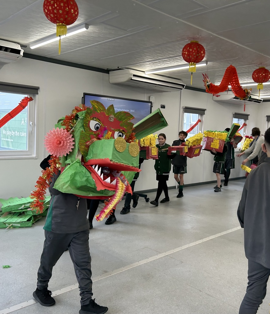 In honour of Chinese New Year our entire Year 7 cohort were tasked with creating their very own Chinese dragon using cardboard boxes. Their brief stated they must explain how they created and decorated their dragon and selected Chinese symbols presented on the dragon.