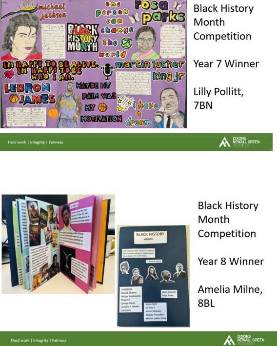 It gives everyone the opportunity to share, celebrate and understand the impact of black heritage and culture. During October, students at DNG heard about significant figures in Black History as well as having the opportunity to enter a competition to complete their own research about people they felt were significant too. Lilly and Amelia blew us away with their winning entries.